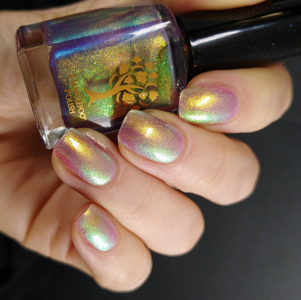 A jelly lilac base with strong gold/turquoise/blue/violet shimmer.