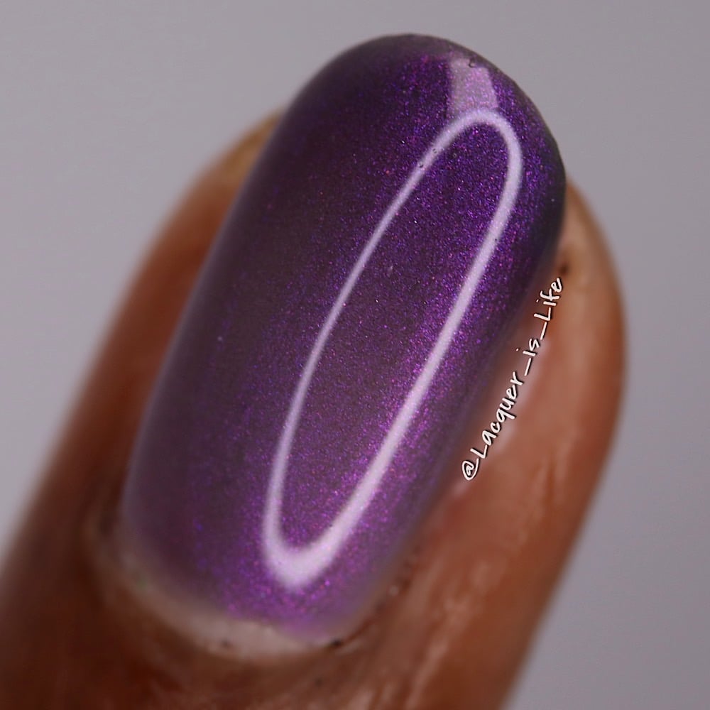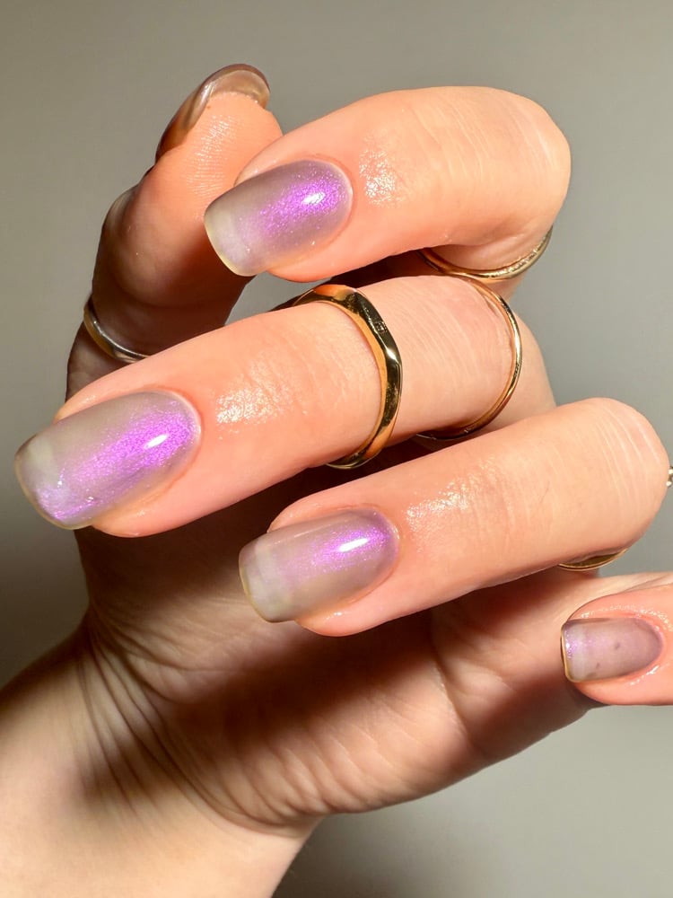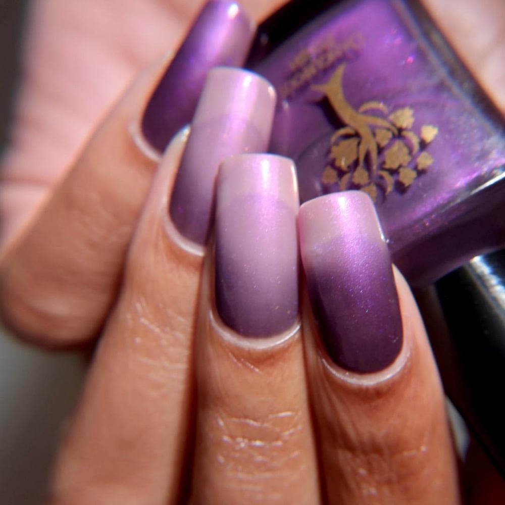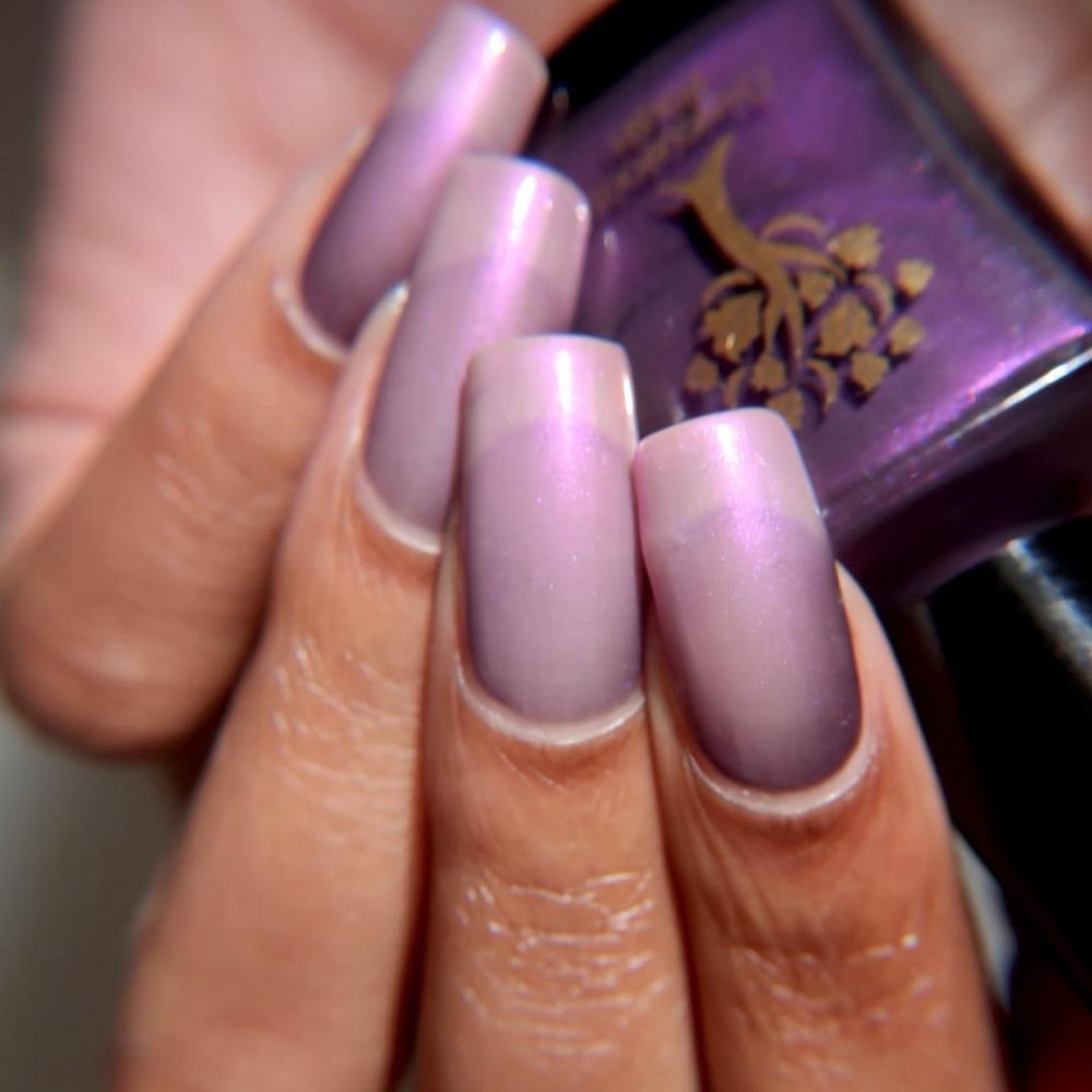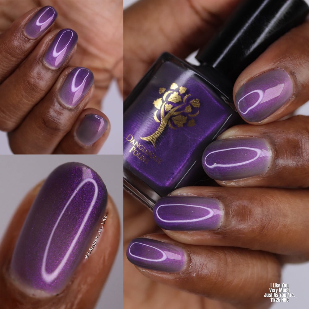‘I like you very much. Just as you are’ is a sheer pink shimmer when warm which transitions to an eggplant purple when cold in a greyed jelly base available 14th-21st November.