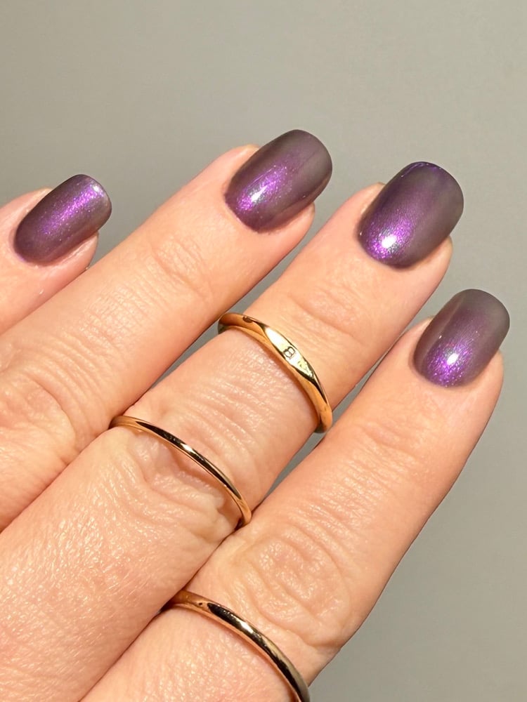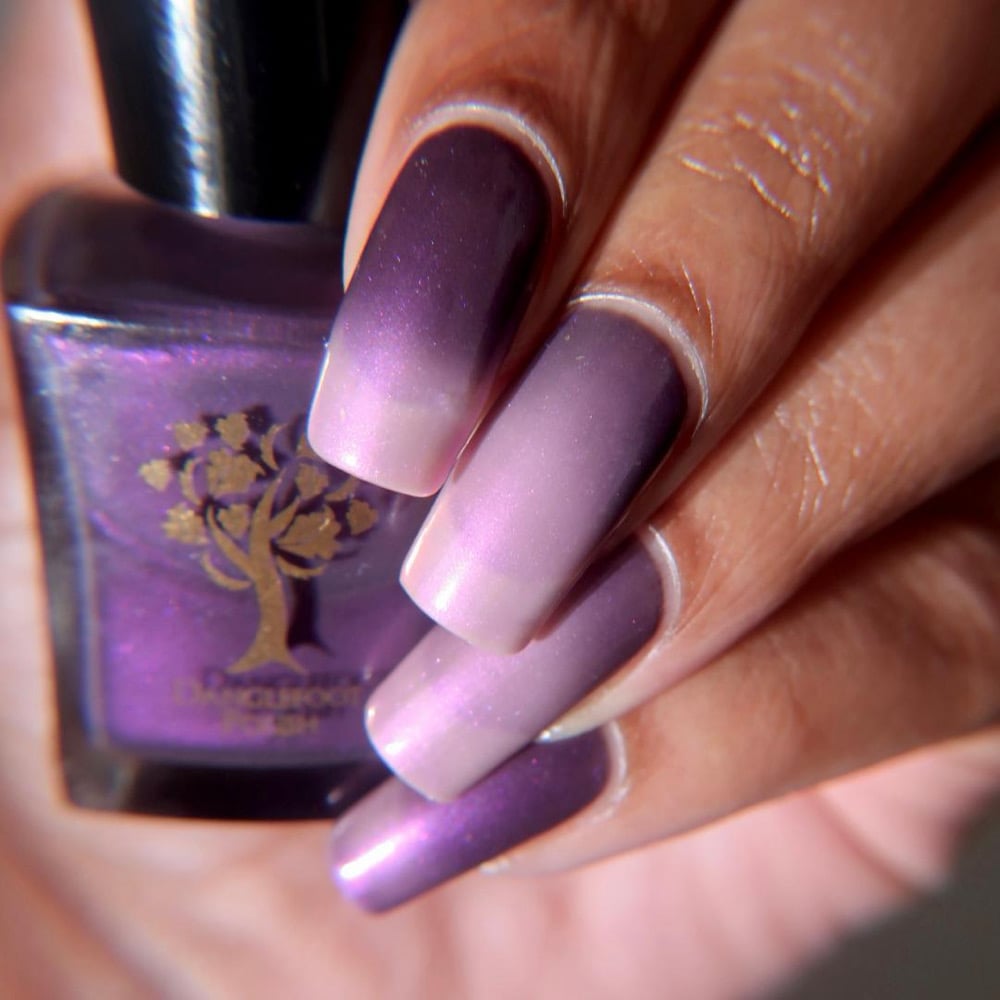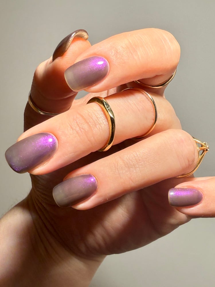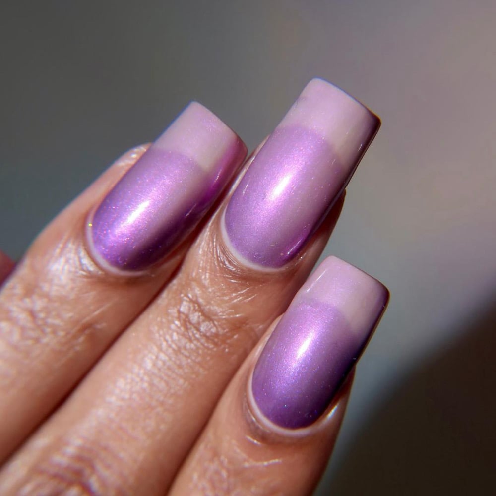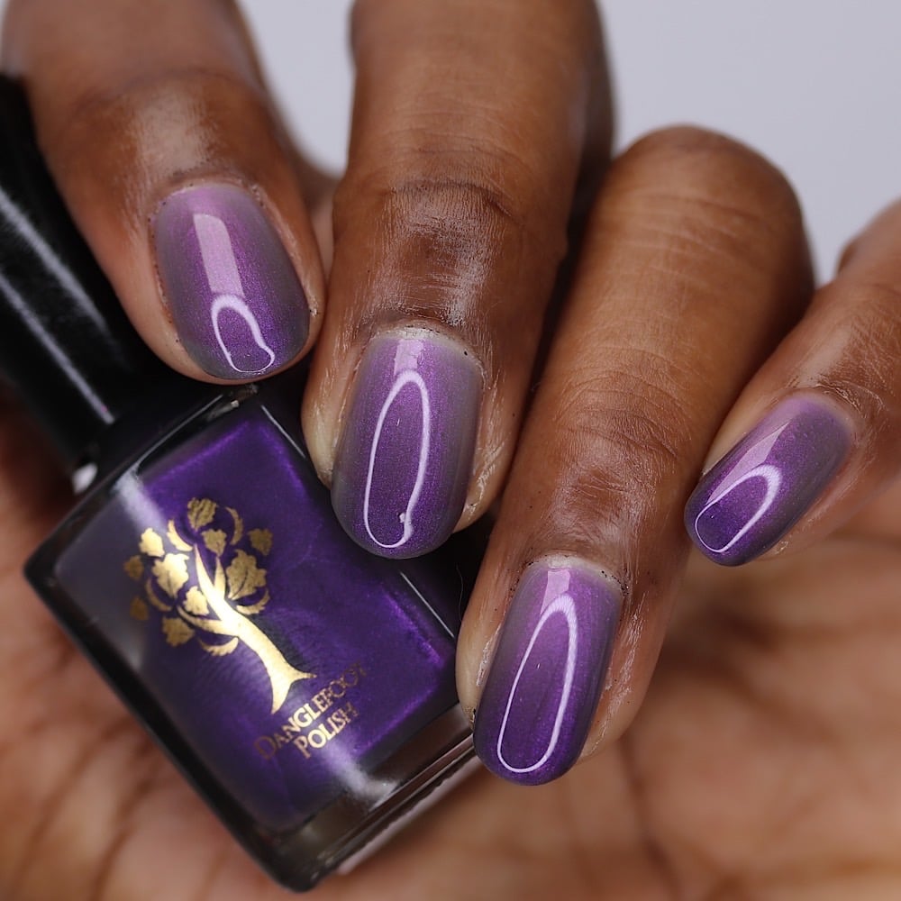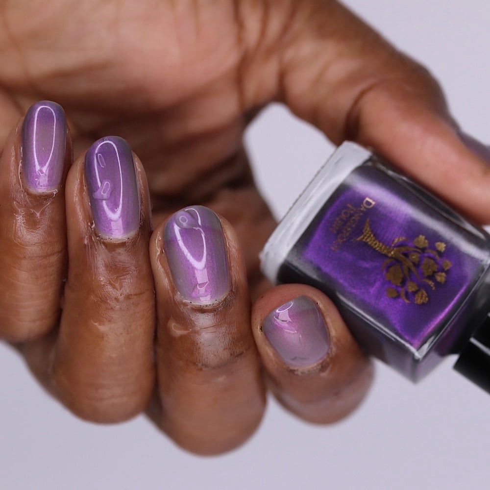‘I like you very much. Just as you are’ is a sheer pink shimmer when warm which transitions to an eggplant purple when cold in a greyed jelly base available 14th-21st November.