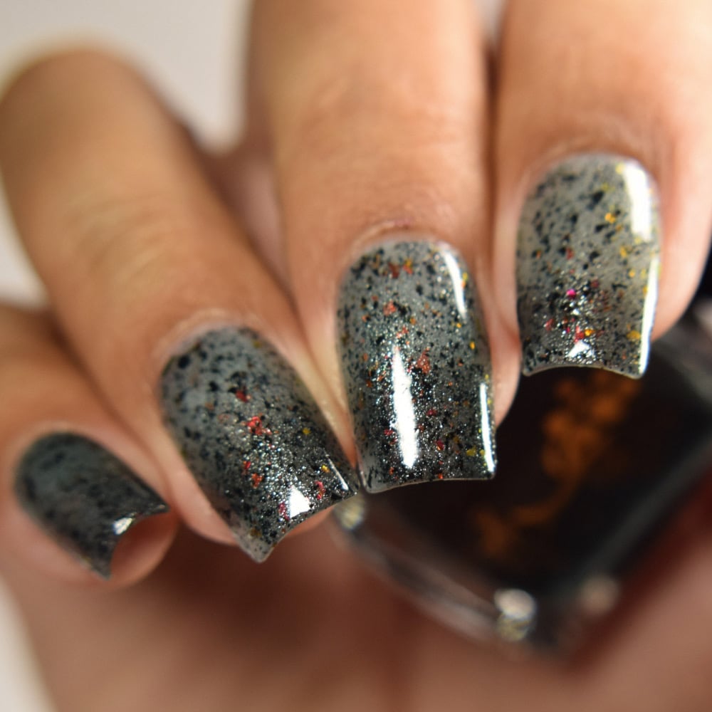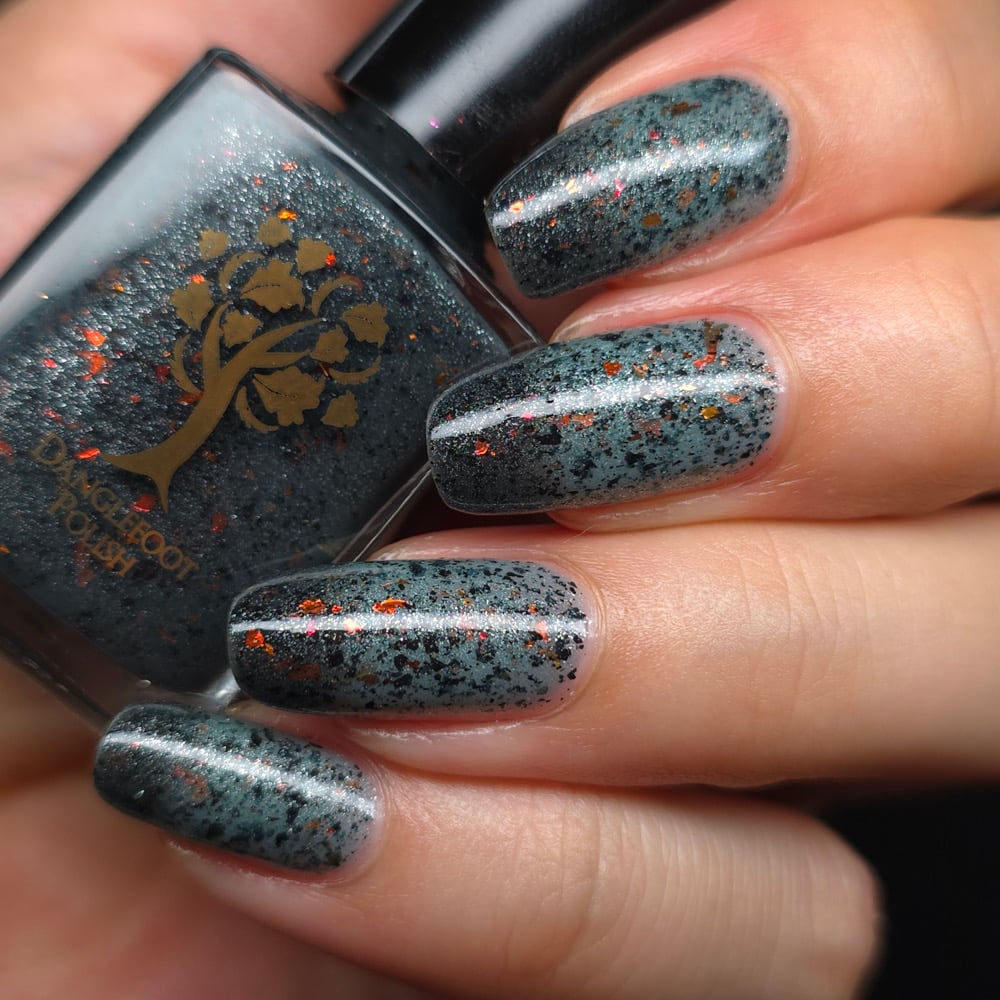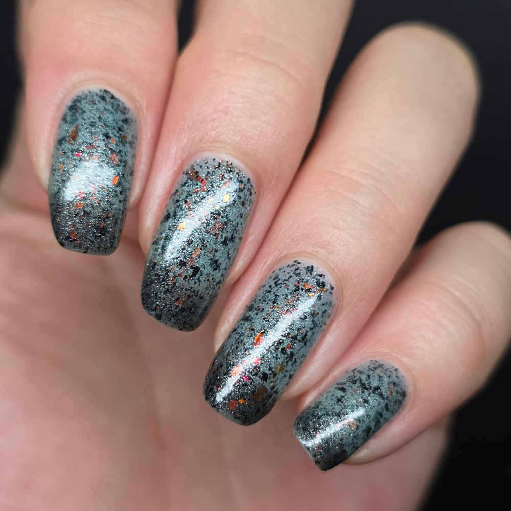 Ghost Love Score - pale teal to charcoal grey thermal with black micro flakes and red/bronze multichrome flakes.